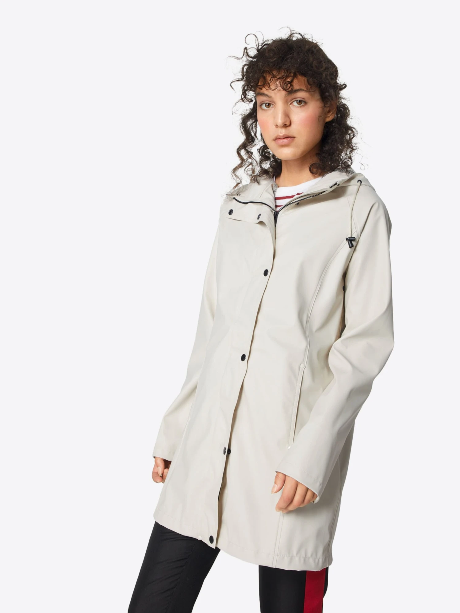 EffenImitatielederRegenjasRegenjasDrukknopenCapuchon met trekkoordCombideelbare ritssluitingZakken aan de zijkantGladde stofLicht gevoerdRitssluiting