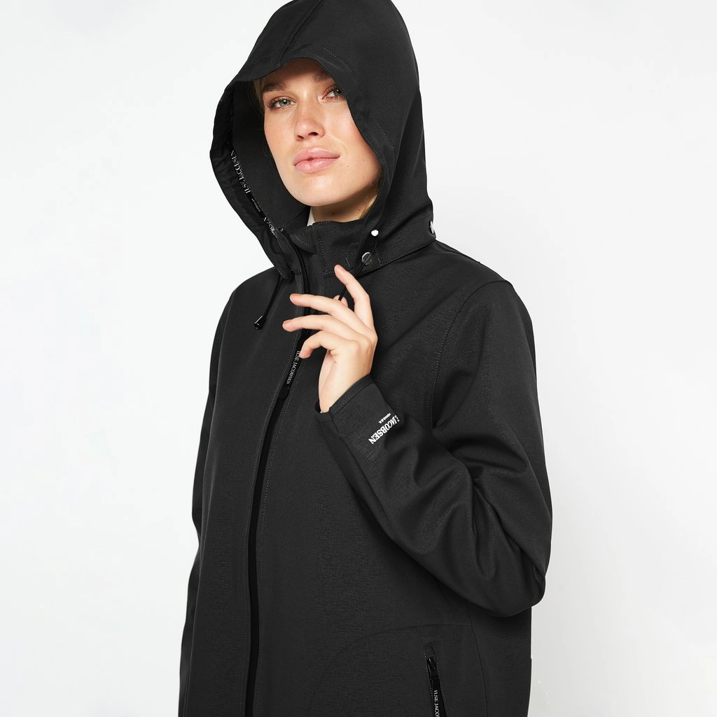De RAIN128 is een prachtige regenjas van het Deense merk Ilse Jacobsen. Het Softshell materiaal is zeer goed ademend en bovendien waterafstotend. Voor extra bescherming tegen de regen is er een Ecorepel coating toegevoegd, welke een onzichtbare beschermlaag vormt tegen water en vuil. De comfortabele fleecevoering voelt heel zacht aan en de jas biedt u optimale bewegingsvrijheid, ondanks de langere pasvorm. De 2-weg YKK ritssluiting is waterdicht en er zijn handige ritsvakken toegevoegd voor het opbergen van uw waardevolle spullen. Daarnaast beschikt de RAIN128 over een afneembare capuchon, die u tevens kunt verstellen met de handige trekkoordjes. De RAIN128 van Ilse Jacobsen is de perfecte jas om er comfortabel en stijlvol bij te lopen, zelfs op de meest regenachtige dagen!